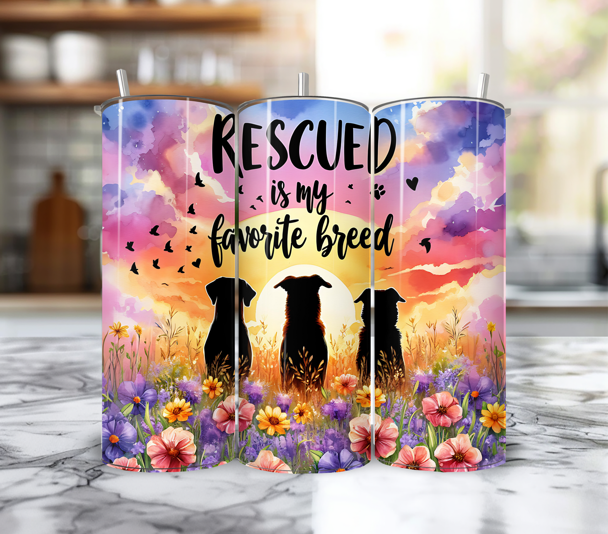 Custom 20oz Tumbler – “Rescued Is My Favorite Breed” Design